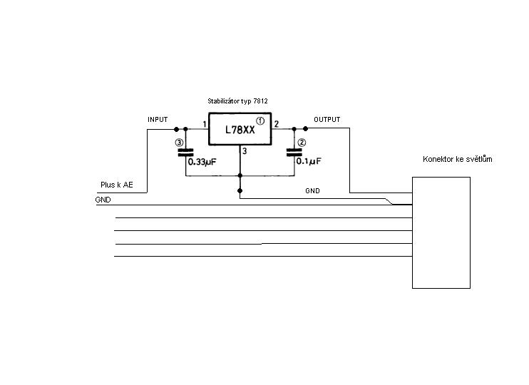 Tak to zapojení máž z datasheetu, jak jsem psal, takže určitě bude dobře, navic se uvadi stejne hodnoty kondiku u vice vyrobcu.. jen je trochu problém, že stabilizator má úbytek kolem 5V, což už je docela dost.. Někde jsem ještě slyšel o možnosti dát tam stabik na 10V a nejak zapojit odpor (buď by se použit spínaný měnič,ale ten moc levný není, proto použít stabilizátor 7810 a zmenšit odpor v serii s LED diodami), ale asi bych to nechal na tom zapojení, jak jsi nakreslil..fungovat bude dobře a účel to snad splní..
