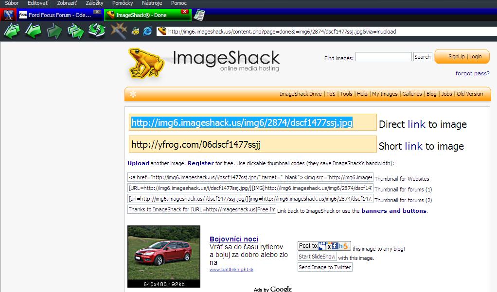 Monďák.. kym sem pridavaš zakaždym jednu fotku, tak ju možeš nahrat priamo na toto forum. Tu je návod ako na to :arrow: http://www.ford-focus.cz/forum/viewtopi ... 54&t=10686