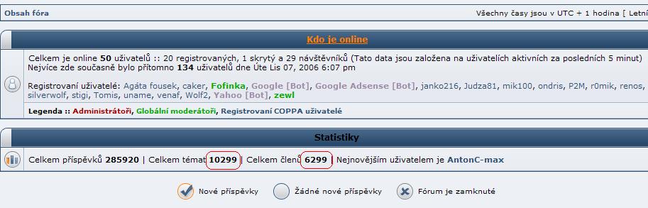 Dovolte mi oživení tohoto tématu. Musím uznat že jsem nečekal takový nárůst. Jak poznáte z prvního příspěvku tohoto tématu bylo před rokem velké očekávání 3000 člena. Za rok na to je tu 6096 členů. Obrovský nárůst. Za poslední jednou tolik co do té doby co bylo založeno a to bylo v březnu 2004!!!! Doufám že nárůst bude stále a že nám to hlavně vydrží server.