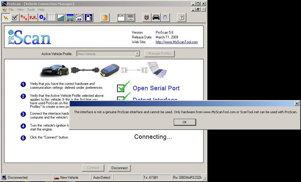 Jede mi ScanMaster, ale třeba ProScan 5,6 mi nějak nejde rozchodit a háže chybu. Neměl by někdo nějaký tip jak na to?