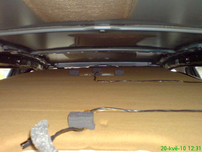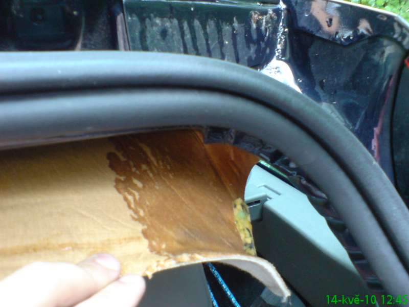 Měl (možná stále mám) to samé, ale na levé straně. Bylo to znát jen přes zimu (asi když byl na střese sníh). Loni v létě jsem lišty sundal tak, že jsem je prostě sthl (odlepil), žádné cvočky jsem tam neměl. Žlábek jsem vyčistil, ale nenašel jsem nic, kudy by mohlo zatékat, tak jsem lištu zase nalepil zpět (bohužel netuším čím, táta mi dal něco spšl na plasty a musím uznat, že to drží jako klíště). Bohužel během letošní zimy se problém se zatékáním objevil znovu, tak jsem radši hned odplastoval bok a podlážku z kufru hodil domu, aby tam nebylo nic, coby vodu nasávalo. Tu stopní desku jsem trošku odchípl a veškerá voda kapala jen z tohou kousíčku molitanu, co tam máš vidět taky. Tak jsem ji vyndal a od té doby mám klid. Bylo to asi místo, kde se voda kondenzovala a z molitanu to skapávalo dál. Teď se voda buď kondenzuje jinde (zatím jsem ji nikde jinde neobjevil) nebo bude klid. To uvidím zase v zimě. Letos jsem chtěl sundat celou stropní desku, ale netuším jak na to, abych ji nezničil. No Ford je opravdu zábava