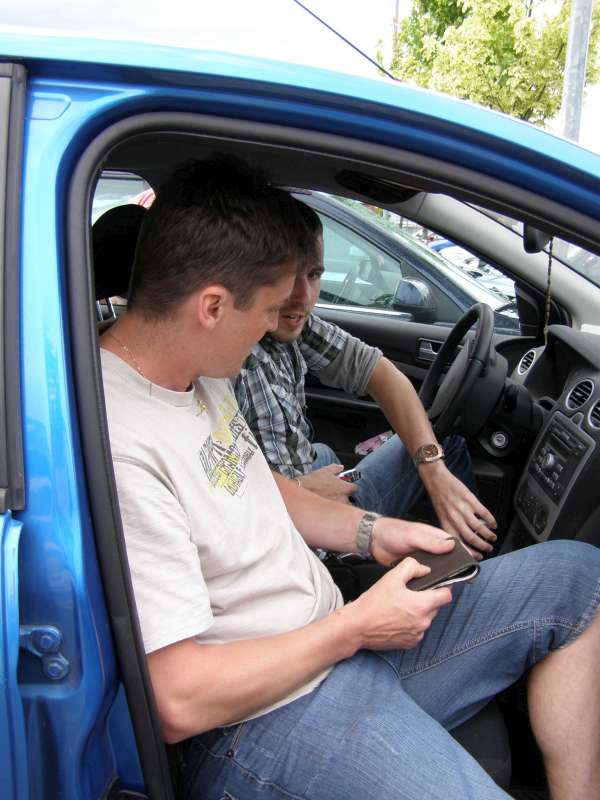 Sešli jsme se přesne ve 12:00. Tímto děkuji všem za dochvilnost. V garážích jsme fajn pokecali. Proběhlo i pár servisních prací na vozidlech. Například si rumcajs půjčil od zuzky anténu aby vyzkoušel ve svém autě GPS. Samozřejmě byla veliká sranda jako vždy.