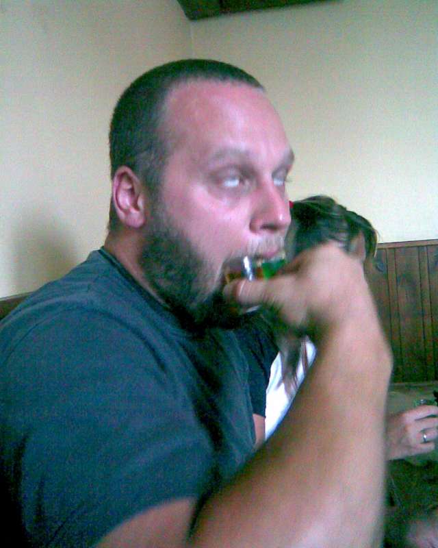 To bylo ještě z doby mé nezkrotné žízně, na fotce jsem na poslední zastávce cyklovýletu s ostatními dovolenkáři v Jihočeské vesničce Chanovice. Útrata na hlavu představovala za odpoledne 14 malých rumů, 7malých zelených, Kávu s rumem a 5 Nektarů. Pak hup na kolo a po lesních cestách za tmy do tábora, kde se vždycky našel nějaký pošuk, co vytáhl další flašky sterea ze sklípku a jelo to nanovo