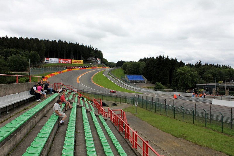 Obě osádky měli úsměv od ucha k ucha a to ještě nebyl konec. Spa nám všem nadělilo krásný a nečekaný dárek v podobě závodu Ferrari Chalenge. Mohli jsme očekávat více? Ano, vstup zdarma. Ten zde k naší radosti opravdu byl. Jsme na okruhu Spa-Francorchamps. Je skoro povinnost zajít k zatáčce Eau Rouge. Už jenom proto, že je to nejznámější zatáčka v kolotoči Formule 1. Televize i PC hry zatraceně zkreslují. Tohle se nedá slovy popsat. Stojíme tam jak opaření, koukáme jak jedno Ferrari v závodní úpravě za druhým šplhá do té neskutečné spirály. Tady bych se chtěl jednou projet.