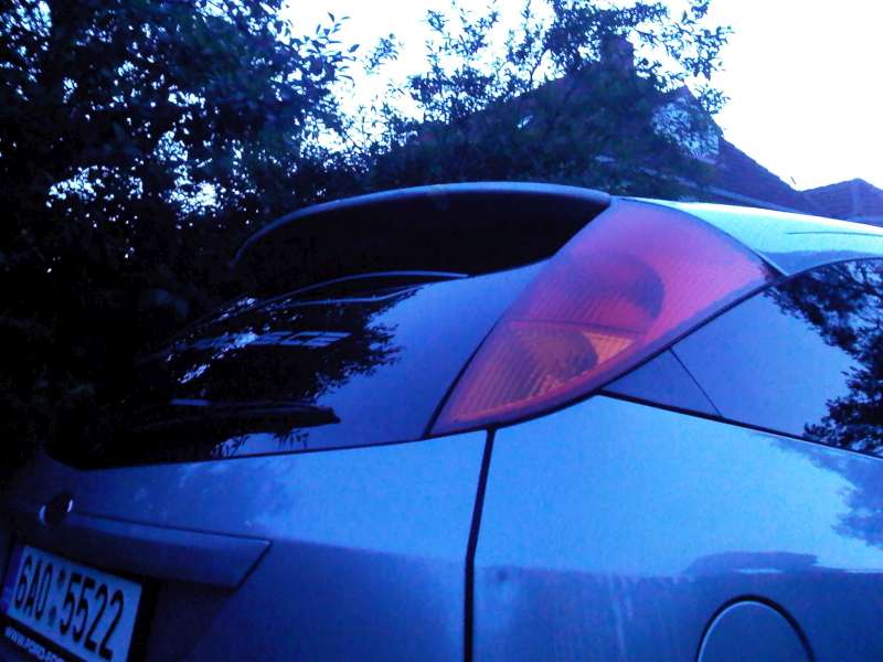 A co se týče křídla, tak to je zatím v garáži, ale na autě vypadá takto (omlouvám se za kvalitu, foceno starým telefonem narychlo a chyceno jen páskou pro představu)