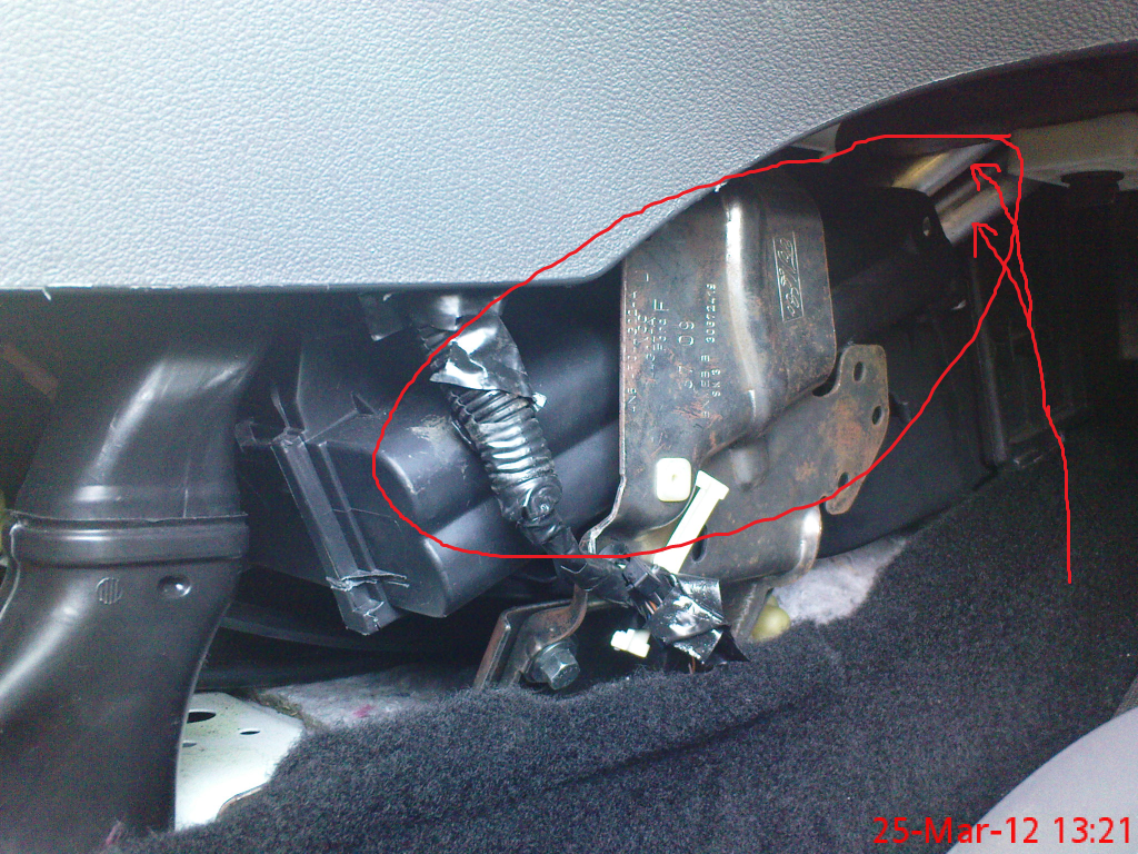Caute, ako zacalo teple pocasie, zistil som ze moj focus sa zvnutra prilis zahrieva. Zacina to na strane spolujazdca na stredovej konzole dole pri nohach. Potom sa postupne zahrieva cela stredova konzola. Odmontoval som kryt na pravej strane dole (vid foto) a zistil som ze su tam dve trubice cez ktore asi cirkuluje chladiaca kvapalina. Tieto trubky su po 10 min. jazdy horuce, aj ked je ovladac nastaveny na studeny vzduch. Z ventilacnych otvorov ide studeny vzduch, ale cely ten stred je teply, pri nohach spolujazdca az horuci a to vyzarovane teplo riadne citit.