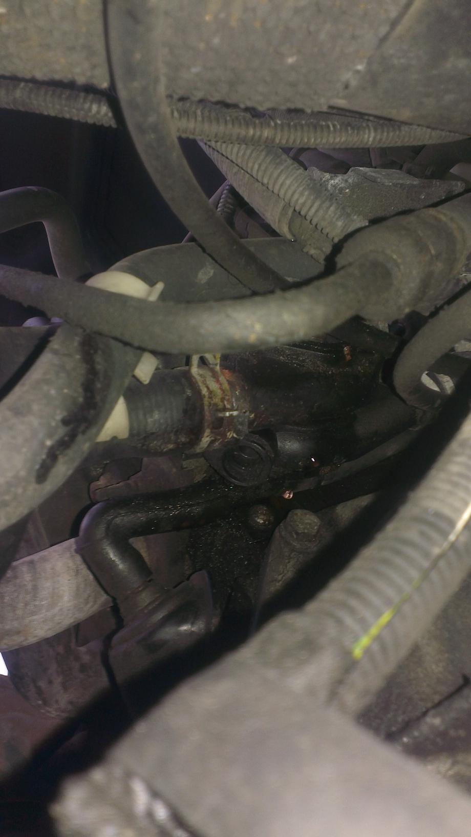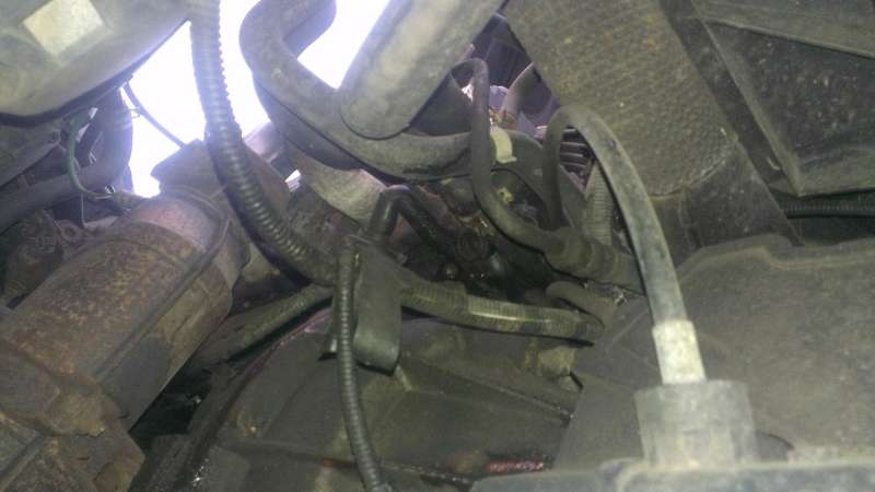 Zde jsem podezříval tu černou silně lomenou hadičku, která už nese na sobě známky nějakého toho roku v provozu, ale kape to vedle ní - jak je ta právě díra, kde mi přijde že trubička chybí...a kousek za ní to kape.