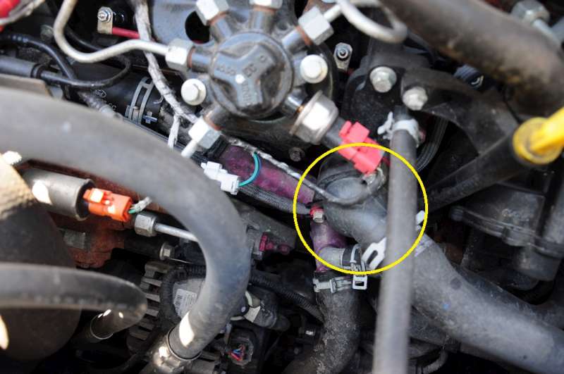 V obrázku máš zakroužkovanej termostat, tak tam se pořádně podívej, jestli není prasklý těsnění.