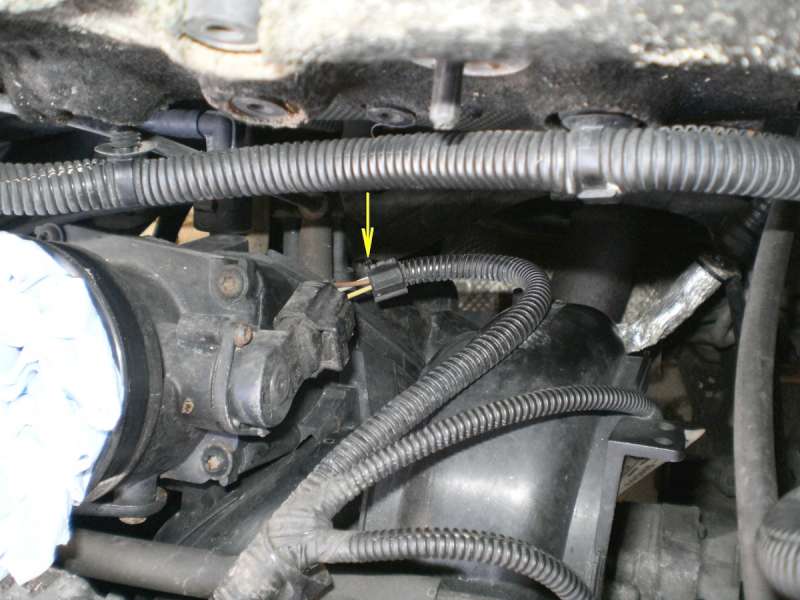 Jo-- ze předu bloku jde přes ten ventilek, pod škr. klapku. Pod termostatem je napojena na trubku, a dál z trubky jde zase hadice pod škr.kl. Pod škr.kl. jsem tam dal takovej klobouček z PVC, a stahnul šroub. páskou.