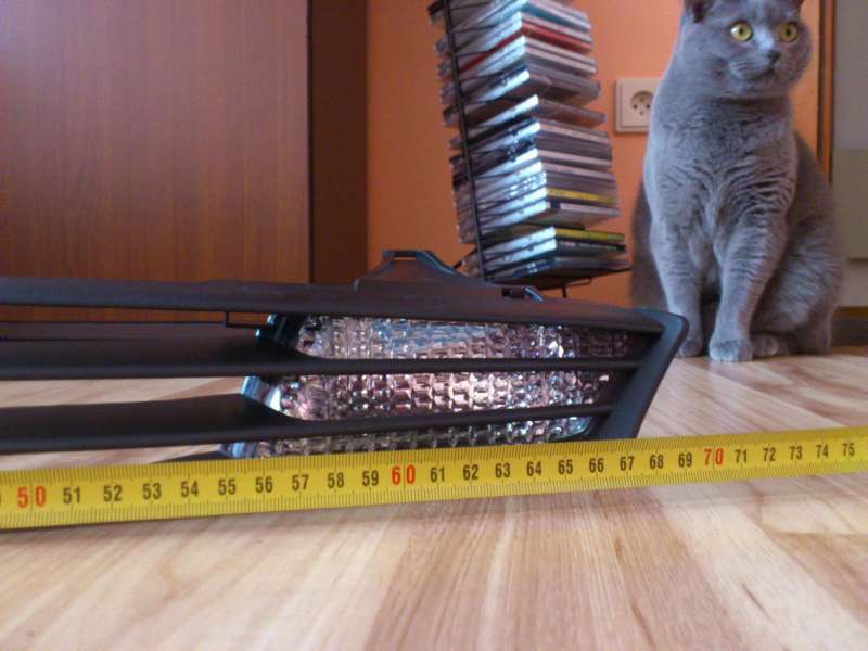 Tak dneska mě to došlo, celkově zpracování vypada docela kvalitně a masivně, mřížka se nijak nekroutí a ty světla jsou vlepená černým silikonem. Patice jsou uplně jiný, ale jsou tam jakoby nalisovaný takže myslím, že půjdou snadno vyloupnout. Já to udělám a místo nich tam přilepím epoxidem část patice ze starých blinkrů. Sice mezi světly je jen 45 cm což nevyhovuje, ale ja to risknu. Jen musím nějak vyšpekulovat to místo, kde je znak ford. Zdá se mě že je jiný.