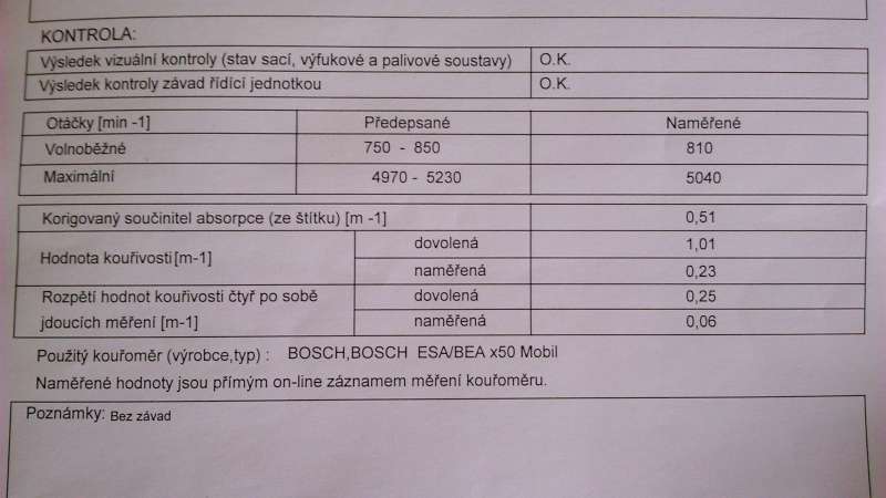 Protože je tu řada témat věnující se odstranění, ale žádné ucelené o provozu auta s DPF a zkušenostech s ním, dovolil jsem si založit tohle vlákno. A začnu záznamem z dnešních emisí.