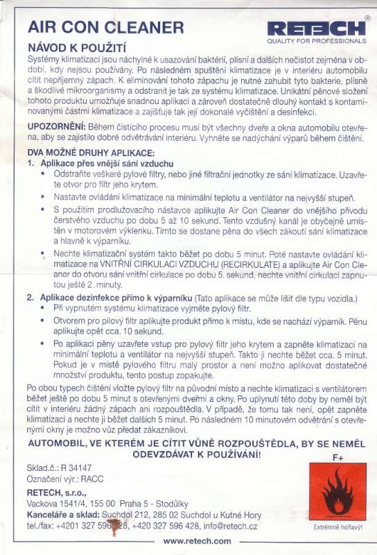 Návod je pro prostředek od Retechu. Jiný výrobce může mít aplikační dobu jinou(dle obsahu dózy).