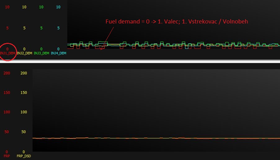 - Fuel demand na druhom vstrekovaci boli take nizke az poziadavky klesli na 0, cize vobec tam ako keby nechcel palivo vstreknut.