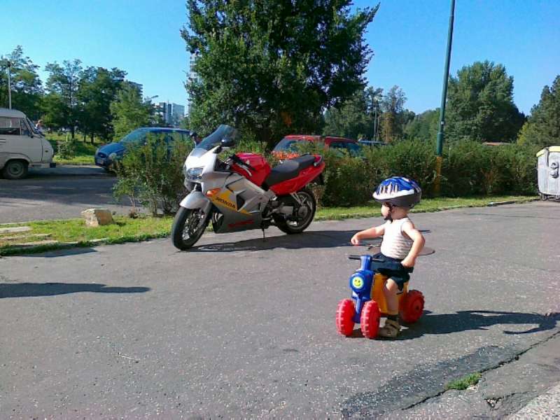 jj tak nejak, motorky sa mu velmi lubia, vzdy ked nejaku vidi, tak spusti "mototaaaa beeeem beeeeeem beeeeeeeeeeeeeeeem..."