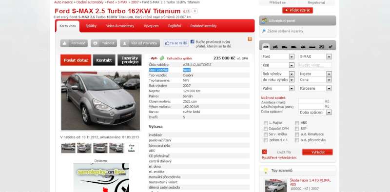 6 let starý, který ročně najel průměrně 20 667 km. http://www.tipmobile.cz/osobni/ford/s-m ... 53216.html