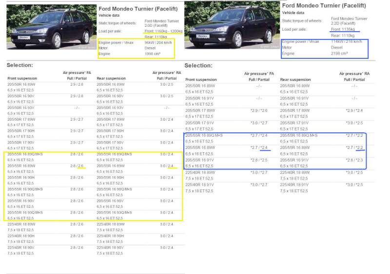 btw. vsimnite si zatezenie prednej napravy a zaujimavost ze pneu na 2,2 TDCi motor staci fukat menej ako pre motor 2,0 TDCi