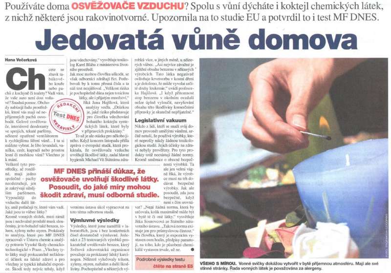 No po přečtení těchto naskenovaných článků se asi trošku odkloním od intenzivního používání vůní jak doma tak v autě. Ale na druhou stranu nejde to úplně, tak snad to nemá zase nějak moc intenzivní vliv na zdraví....