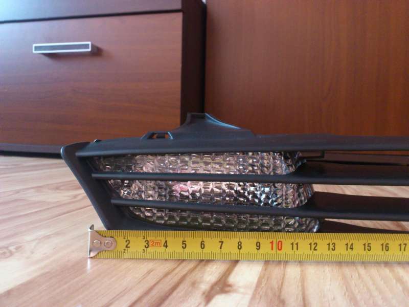 Tak dneska mě to došlo, celkově zpracování vypada docela kvalitně a masivně, mřížka se nijak nekroutí a ty světla jsou vlepená černým silikonem. Patice jsou uplně jiný, ale jsou tam jakoby nalisovaný takže myslím, že půjdou snadno vyloupnout. Já to udělám a místo nich tam přilepím epoxidem část patice ze starých blinkrů. Sice mezi světly je jen 45 cm což nevyhovuje, ale ja to risknu. Jen musím nějak vyšpekulovat to místo, kde je znak ford. Zdá se mě že je jiný.