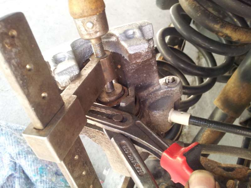 Tak už to mám taky za sebou. Nejhorší bylo sundat kotouč z náboje, jak to bylo zarezlý. Hodinu jsem do toho lehce bušil gumovou palicí a furt nic. Chce to pořááádně do toho mlátit :nunu: :nunu: :perfect: . Ještě mě čeká zadek, ale tam se musí točit nějak s tím pístkem, když se zatlačuje, tak to musím ještě nastudovat. Zasloužím si :beer: .