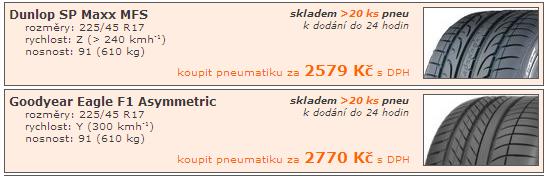a co říksate na tyto: http://www.nejlevnejsipneu.cz/cz/pneuma ... &prumer=17 bud ty za 2509 nebo ty za 2335.nebo my nějíké doporučte dík