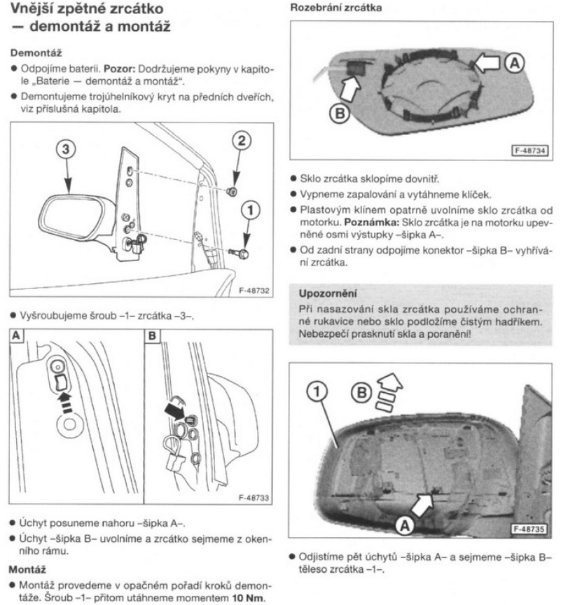 Ozyvam sa opat, kedze nikto nic. Chcem skusit rozobrat zrkadlo, aby som sa dostal k motorceku a pozrel ci tam nieco nie je tak, ako nema byt. Motorcek sa asi bude riadit podla nejakych mikrospinacov slopenia/vyklopenia zrkadla, takze ci nie je nieco v nich cvaknute. Prikladam navod z knihy "Jak na to?", len neviem ci podla tohto navodu sa dostanem az k motorceku sklapania a k celemu tomu mechanizmu. PLS HELP#2 :?
