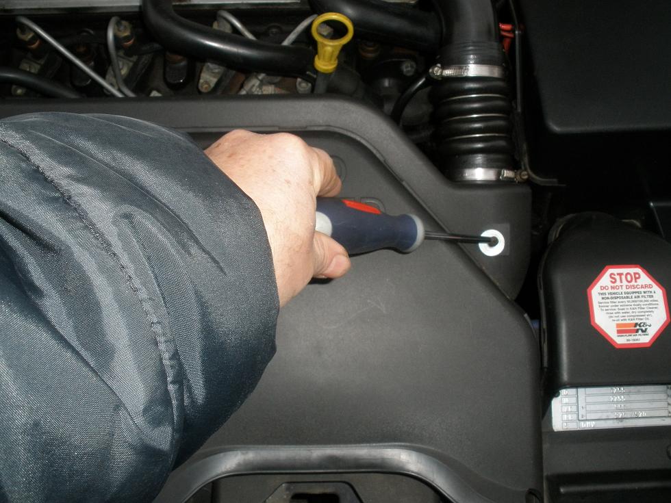Nejdříve vyšroubuji 2 x šroub na krytu intercoleru ,je to zároveň i přívod vzduchu pro něj a sejmu ho ,jde to velmi lehce: Je to ohebná plast.deska ,která se po ohnutí zase bez poškození srovná Já tam mám desky dvě tj. 2/3 chladiče mám zakryto .Ten prostor před chladičem má dno ,takže ty desky nemůžou propadnout a krásně tam stojí