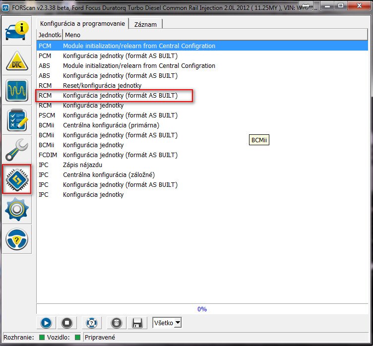 Lebo neviem ci sa potom objavi nejake menu pre "Modul Configuration funkcrion" a nemam ani ten factory As Built