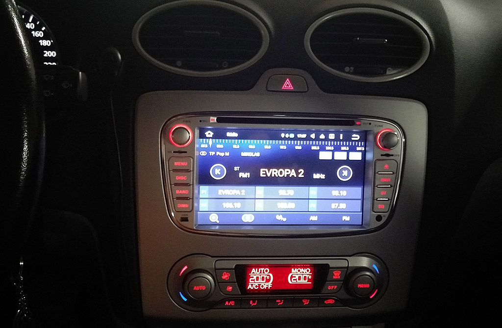 Jinak s rádiem jsem max. spokojen, vše je perfektní a konečně nemusím mít na okně držák na telefon a navigaci. Navigace je IGO, což je asi nejlepší co jsem vyzkoušl. 7" je perfekt. Jinak po Praze jezdím (pokud potřebuji) s google mapami kvůli aktuální situaci hustoty provozu. Na telefonu si vytvořím wifi hotspot a připojím se do internetu. HF funguje suprově s externím mikrofonem. Pro hudbu, video je připojený externí disk schovaný v kastlíku. Připojení na domácí sít přes WiFi když zajedu před barák, aktualizace app, map a plánování cest. Pozoruji zhoršený příjem rádia oproti původnímu Ford 6000CD. Rozhodl jsem se koupit delší anténu (bič) tím bych tento příjem vylepšil. Zvuk z audia nebo videa je o 100% lepší než originál radio ze všech vstupů rádio/CD/AUX. Zřejmě je tu použitý lepší převodník. Samozřejmě záleží na zdroji, mám kvalitní samply takže to ocením. Pokusím se sehnat jinou aplikaci na rádio, jelikož u této mi nevyhovuje divná funkce RDS/AF.