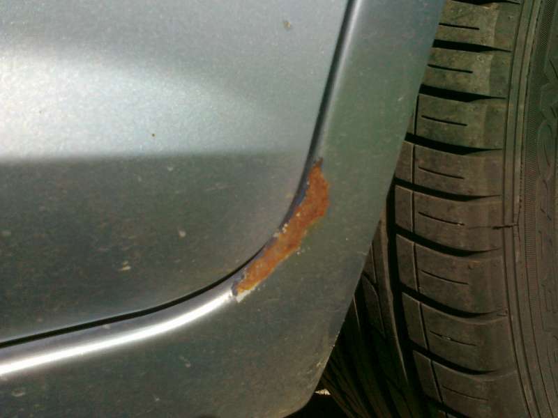 A odkud to auto z ČR je? Prostě majitel jezdil buď hodně v zimě v břečce prosypané kameny a ani náhodou to občas neostříkal, pak mohl jezdit na nezpevněných cestách (šotolina). Proto také novější modely mají plastové kryty jak za předním kolem, tak pod celými prahy.