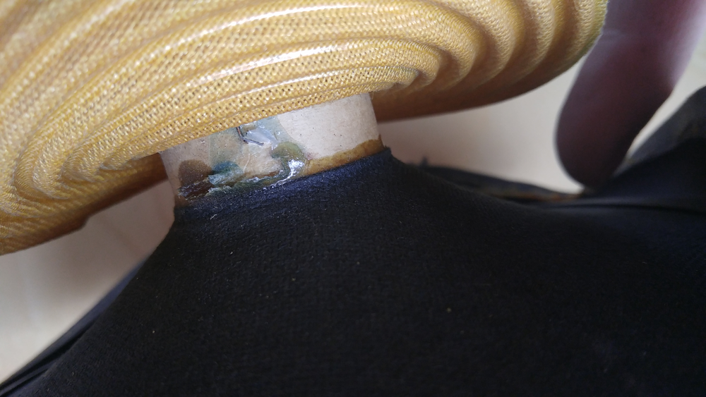 Prace asi na hodku a vsechno hraje. Pro zajimavost jsem pak jeste zkoumal, kde je prerusena ta civka puvodnich fordich repro a vcelku rychle jsem prisel na to, ze je to jen studeny spoj mezi privodnim dratkem a dratkem samotne civky. Viz posledni foto v detailu. Dalo by se to asi opravit po opatrnem castecnem odlepeni horni membrany a preletovani delsim hrotem pajky, alespon na tech vyparanych membranach se mi to podarilo snadno bez poskozeni a normalne jsem pak nameril 4Ohmy, jak ma byt, cili, byvaly by se daly zachranit a nemusel jsem je krizit. Tak pro priste