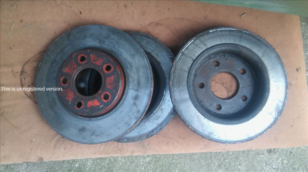 Provedena kontrola brzd. Předek je OK, kotouče hladké a rovné, brzdové destičky ještě 5-6mm. Ale zadní kotouče nicmoc, přidřené třmeny. Pokusím se je zarovnat a pokud se nevejdu do tolerance, nechám dát nové, plus destíčky a oprava třmenů.