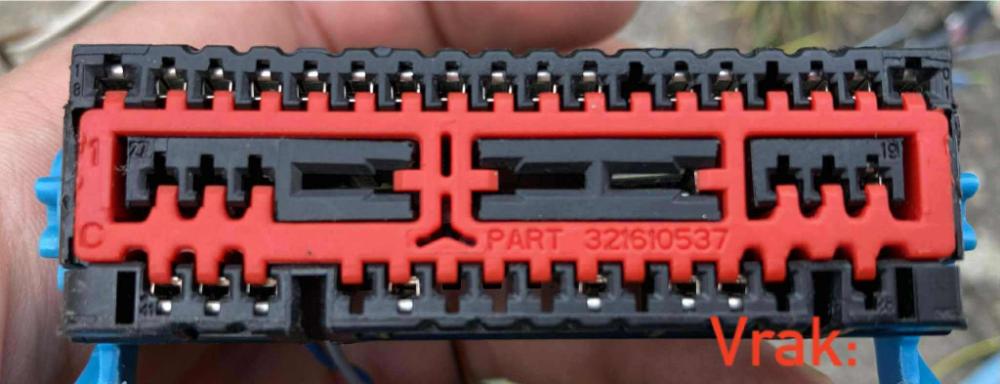 konektory vypadaji stejne a pasuji do sebe, ale jsou v nich piny a mely by byt vsechny jak v novem tak v puvodnim konektoru; a to vcetne barev a prumeru; pokud neco nesedi nebo chybi nebo je navic, je potreba ve schematech dohledat, co to je a k cemu to je