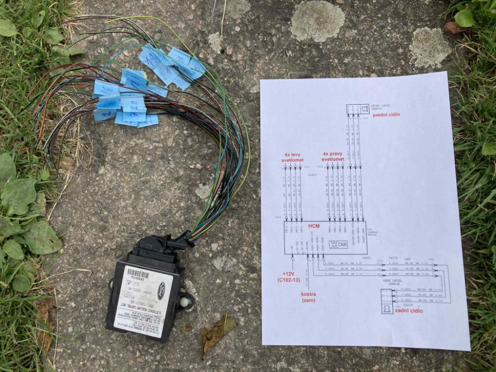 Jednotku jsem zapojil, bohužel to moje přední čidlo je špatné, takže budu objednávat jiné, ale jednotku to normálně načte, naštěstí děda má Focuse s xenonama, takže jsem zkusil jeho čidlo a po zapojení chyba zmizí, jen se načte další chyba...a to zadního čidla (které zapojené nemám), na tom návodu je svazek až k zadnímu čidlu, je možné ten svazek podle katal. čísla koupit? Ten svazek vede od čidla, někam k zadním sedačkám do propoje?