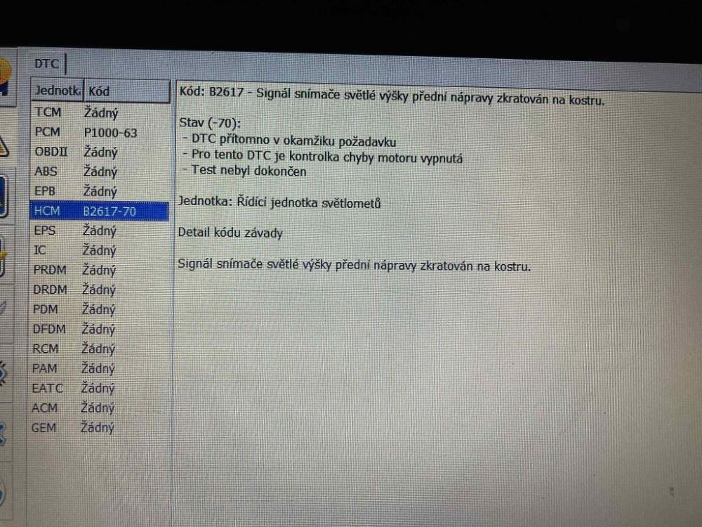 Chtěl bych to mít kompletní, aby mi taky zmizla chyba o nezkalibrování světel HCM, které nelze provést s chybou v jednotce.