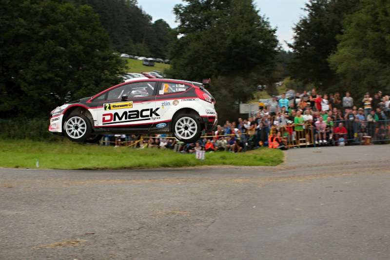 Na začátku jsem stál u betonového sloupu na straně dál od Vlčkové, z tama byly skoky vidět pěkně. Ale abych neměl jednu fotku jak druhou, jen s jiným autem, tak jsem si přešel na stranu blíž k Vlčkové (jak byl komentátor). Přehazuji si sklo na menší a v tom slyším, jak komentátor (mimochodem, ten si musel fakt v něčem frčet