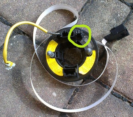 Ja som mal tusim skratovane pod volantom aj tie co som potom pouzil na napajanie tlacitok.Len som vyhodil ten pliesok.Pouzil som 1 vodic na 12V,kostru som bral z volantu.Tu su 2 slimaky,ten s 2 skratovacimi plieskami je moj,ten druhy z vrakoviska.Zaujimave ze ten z vrakoviska ma len 1
