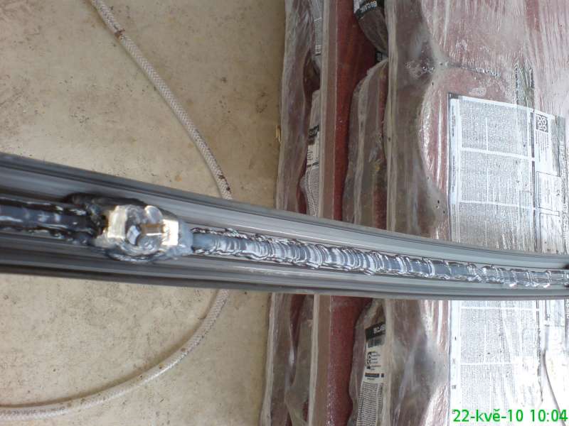 Po oddělání lišt jsem nenašel žádný spoj a žádnou prasklinu. Střešní žlábek pro lištu hladký bez nerovností. Při zpětné montáži jsem trochu mázl Butymelem gumové těsnění co je okolo šroubů.