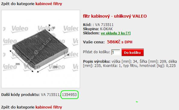 Tak jsem ještě hledal a našel, že Valeo s aktvivním uhlíkem bude asi úplně stejný jako originál Ford pachový. Kód u Forda je 1354953 a ten samý kód je uveden i u Valea. Takže pravdu máš ty. Ten základ pachový je prostě filtr s aktivním uhlíkem. Přikládám obrázek i s kódem Valea. Jak vypadá a s jakým filtrem je srovnatelný pachový+ nevím.Forfoc píše:Zde jsem ještě našel německé doporučené ceny originálních náhradních filtrů.