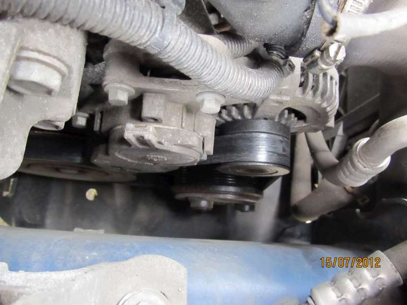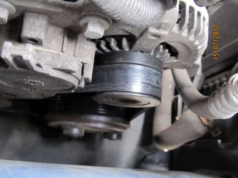 Udělal jsem foto pomocného klínového řemene a trochu mě znepokojuje, proč je na jeho ploché straně tak vydřený. Je to normální. Nebo, že by byla přidřená napínací kladka?