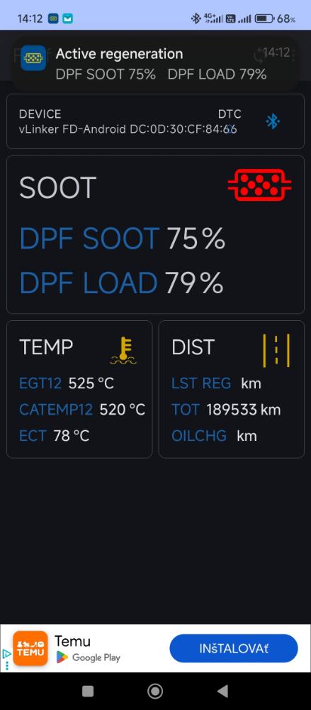 Podmienky idealne ,jazda po diaľnici dpf plny ale teplota neprekročila 500 stupnov, proste pri cca 470 prestala stúpať napriek tomu zebsom šiel 150km/h