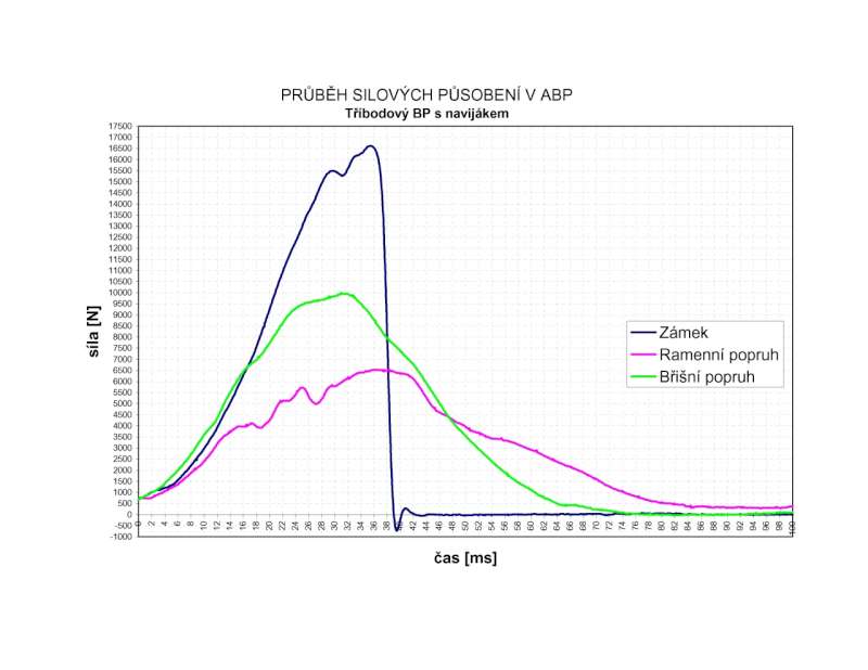 psal jsem ale... ja tech detailu takto opravdu moc pustit nemuzu, ale aspon na ukazku nejake prubehy sil v jednotlivych popruzich bezpecnostniho pasu s dopinacem. (crash speed 50km/h , brzdna draha 370mm, zpomaleni 30g, cas 61ms).