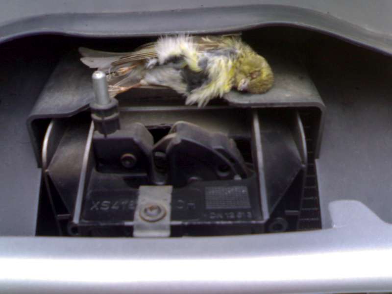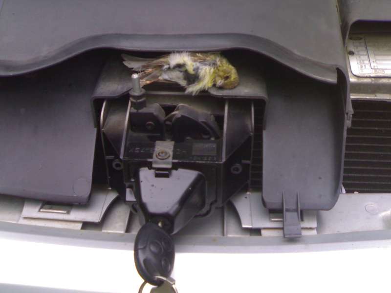 Tohodle ptáčka jsem trefil tak před půl rokem, když jsem asi dva týdny jezdil bez přední mřížky, když jsem ho objevil, tak už s ním hejbali červíci
