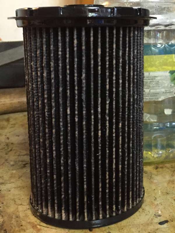 Tak dnes jsem se konečně dokopal k tomu, abych vyměnil palivový filtr. To co jsem vytáhnul mě opravdu vyděsilo. Ten filtr snad zplesnivěl, ne ? Kupodivu s chodem motoru nebyl vůbec žádný problém ...