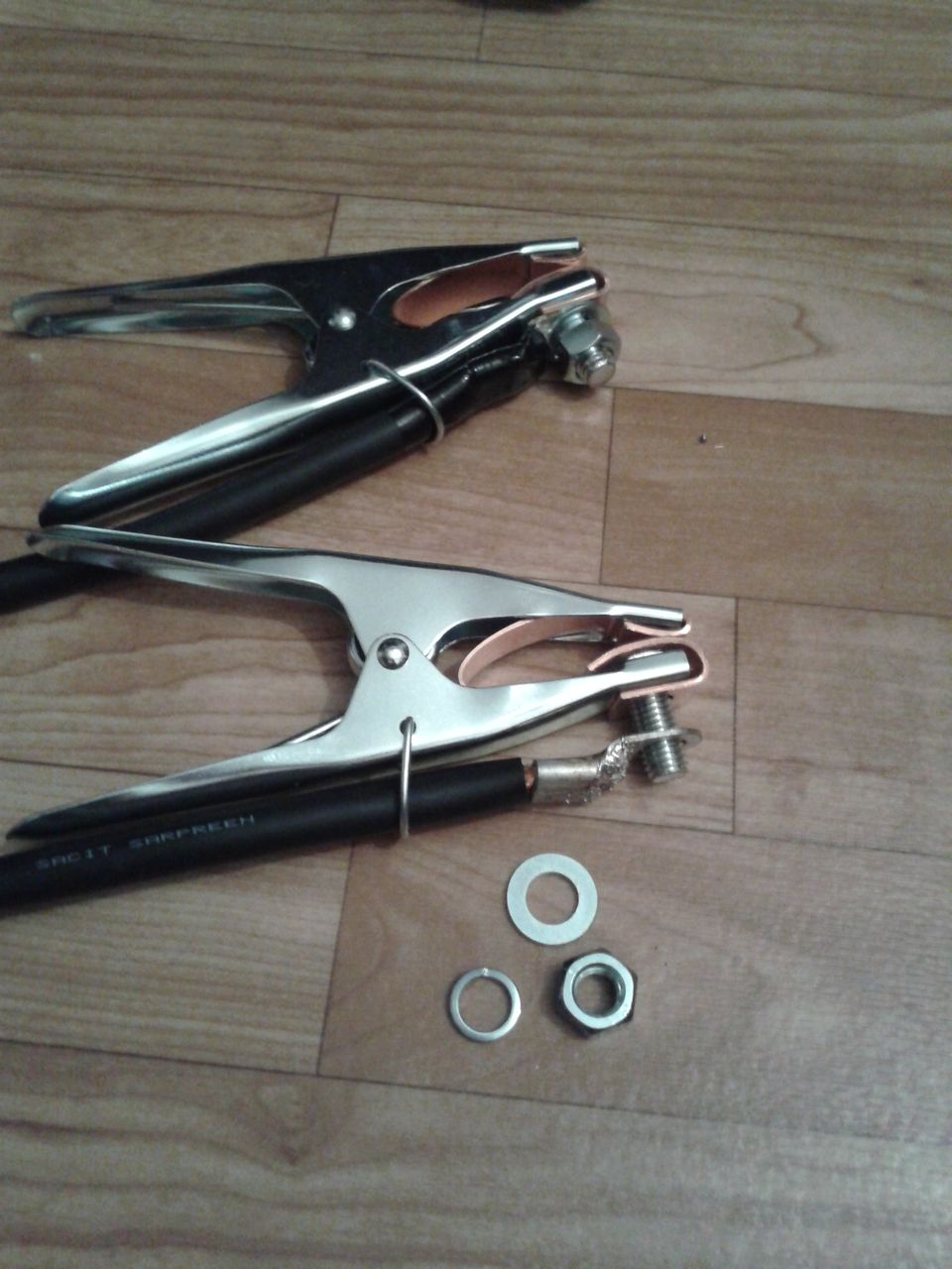Poté co se mi zlomila izolace u jedné ze svorek marketového kabelu a spočítal celý půltucet osamělých měděných drátečků, vyrobil jsem si vlastní. Koupil jsem svorky, 2x3 metry kabelů od svářečky k elektrodám (gumová izolace, 25 mm2 průřez), svorky jsem proletoval cínem a můžu příští zimu startovat i lokomotivy. Výrobní náklady cca 600 Kč, půlhoďky práce.