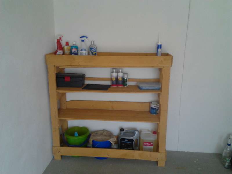 vidím že tu je kutilský koutek tak se taky pochlubím se svým výrobkem hold po koupi FOFO II jsem musel vyklidit garáž a s dílny na opravu kol se stala plnohodnotná garáž ale co s těmi věcmi poházenými všude po zemi,no a aby se mi tam to autí vlezlo bylo potřeba to nějak uspořádat a tak jsem vyrobil dřevěný regál