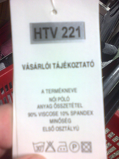 Cedulka ze včerjška na dámské halence, asi popis velikosti. Trochu mi to připomnělo nákupy v Itálii ze Slunce, seno, erotika.