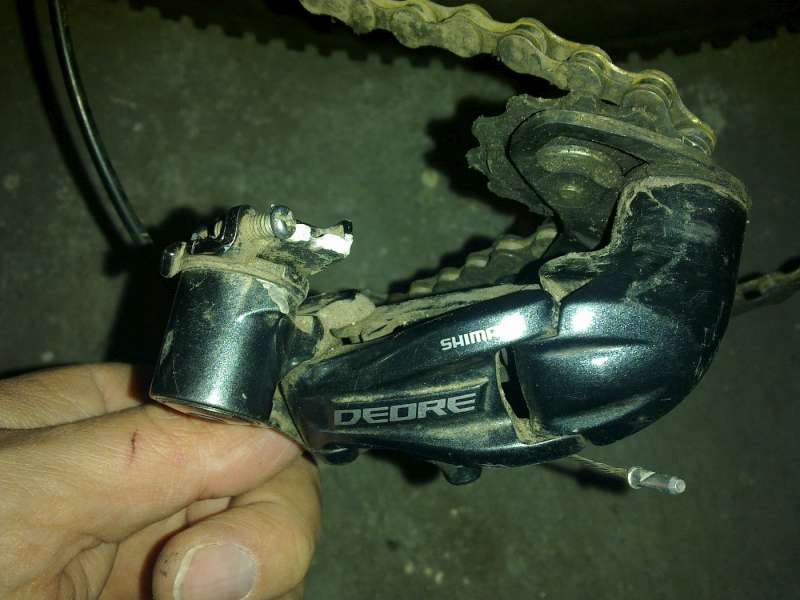 utržená patka, zkroucená přehazovačka a v lese to odnesla jedna docela slušná větev.
