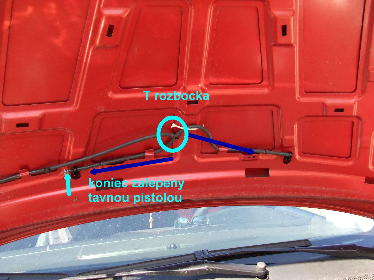 Já žádné Tečko nedával a nedělá mi to nic. Jen jsem ve dvou místech rozřízl hadičku, nasadil a funguje. Od té doby se objeví jen malé véčko, ale to je voda, nedostříknutá na sklo, tak jak jde vidět u tvého ostřiku vlevo ( z pohledu řidiče ). Každopádně dej echo jestli to tečko mělo nějaký význam