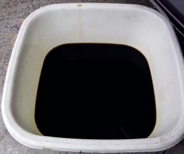 Starý olej (po 165tkm, 80% naježděno po dálnicích na 5. stupeň) byl už dost tmavý - viz kapky na papíře.