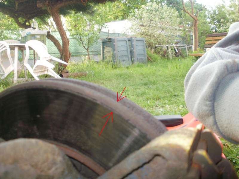 Jeste jsem si vsimnul,ze na levem kole je prava desticka (ta vnitrni) asi o 2 mm bliz ke stredu kotouce,nez ta vnejsi desticka. Na kotouci je taky videt,ze na kazde strane je diky tomu jinak tlusty prouzek rzy.